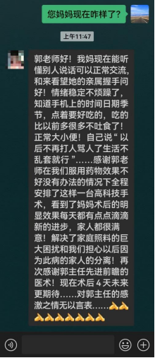 哈市81岁的杨奶奶在一年半前,出现了记忆力下降,有时胡言乱语。经常做出匪夷所思的事情,将衣服反穿,衣服和裤子不分。经常将家里的东西从楼上扔下,和家人发脾气,家人暗暗叫苦,带着杨奶奶经多方就诊和治疗,病情始终没有改善。最终,杨奶奶在家属的陪同下来到哈医大二院就诊。