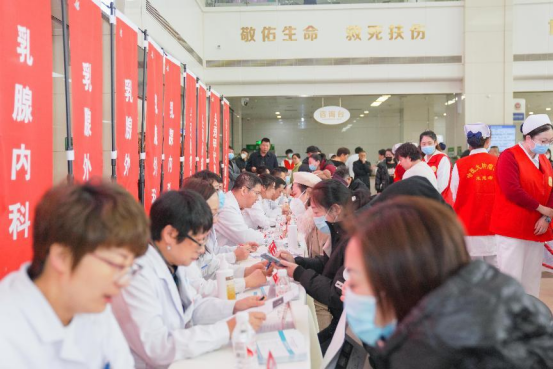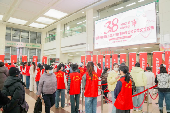 来自哈医大肿瘤医院和在哈高校的志愿者身着红马甲,忙碌在人群中,为患者答疑解惑、引导患者就医,义诊秩序井然。前来就诊的王女士表示:“平时工作繁忙,很少有时间关注自己的身体状况。这次妇女节恰逢医院义诊,让我们得到了专业的诊疗服务,学到很多健康知识,真的很贴心。”