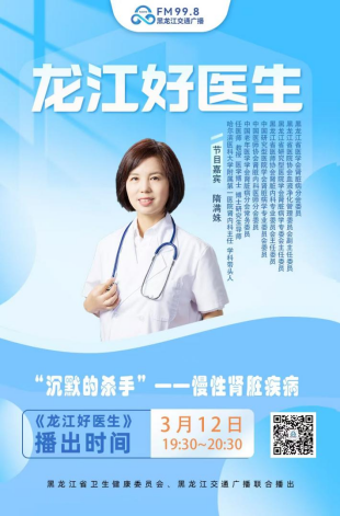 12日晚,隋满姝教授做客黑龙江省交通广播“龙江好医生”栏目,通过实时互动向万余名听众科普慢性肾脏病防治知识。14日下午,肾内科通路团队还将为终末期肾病患者提供免费动静脉内瘘超声评估,帮助患者预判并发症风险。