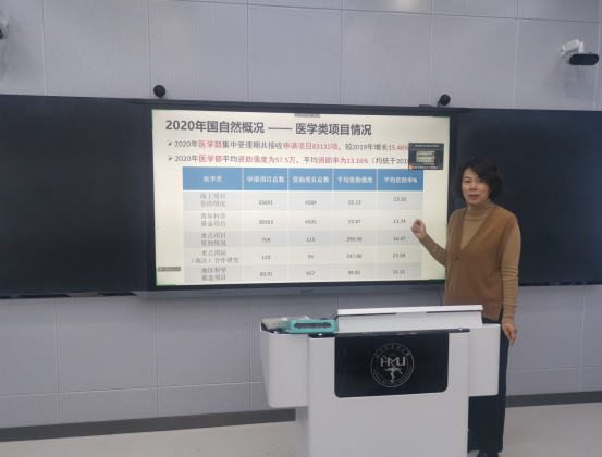 科研处处长李颖教授首先对我校2021年度国家自然科学基金的总体情况进行了总结和分析,叮嘱国自然申请人员要强化科研诚信意识并重视科研经费管理,鼓励大家积极准备申请书撰写。