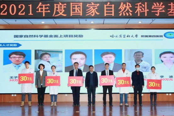 10月27日下午,哈医大四院召开2021年度国家自然科学基金表彰大会暨2022年度基金申报启动会,对医院2021年国家自然科学基金获得者给予表彰。学校副校长孙长颢、科研处处长李颖、基础医学院院长周钦,四院党委书记郭松出席会议。院领导班子成员、全院临床主任、职能科室负责人、青年科技人才参加会议。王国年副院长主持会议。