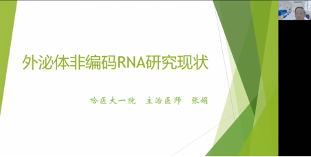 东北农业大学生命科学学院吴云舟副教授作题为“基因工程抗体在肿瘤治疗药物开发中的应用”的报告,他从基因工程抗体发展的背景及抗体药物开发实例进行了讲解;哈医大附属一院张娟主治医师,作题为“外泌体非编码RNA研究现状”的报告,她从外泌体产生、分类、作用机制及研究应用领域等几个方面进行了介绍。