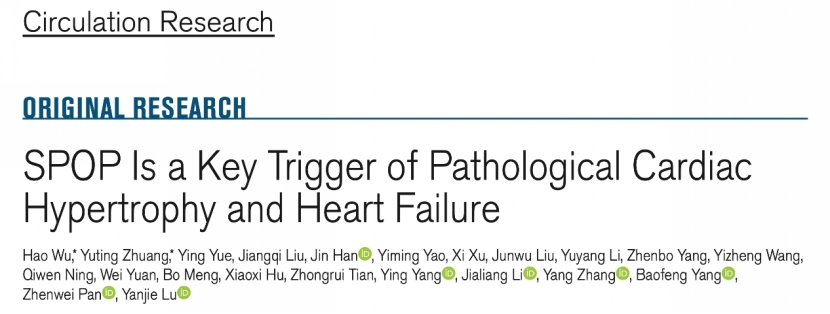 近日,我校寒地心血管病全国重点实验室杨宝峰院士团队吕延杰/潘振伟教授课题组在心肌肥厚和心力衰竭研究领域取得新成果:《SPOP is a key trigger of pathological cardiac hypertrophy and heart failure》,被国际知名期刊《Circulation Research》收录并正式发表。