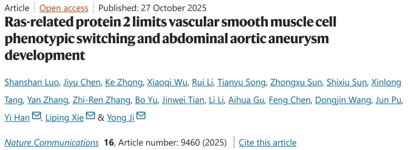 季勇教授团队揭示RRAS2维持血管平滑肌细胞收缩表型并抑制腹主动脉瘤发生的新作用及分子机制
