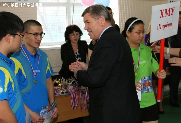 本次体育节设有篮球、排球、乒乓球、跆拳道、国际象棋等赛事,我校3名运动员在乒乓球比赛中取得了团体第二名的好成绩,为学校争得了荣誉。闭幕式上,远东国立医科大学校长马洛奇内教授为我校选手颁发证书及奖杯,并鼓励选手在下届比赛中取得更大的进步。在领队总结会上,马洛奇内校长对我校参加本次体育节表示了衷心的感谢,并请代表团转达对校长杨宝峰院士和哈医大全体员工的新春问候。