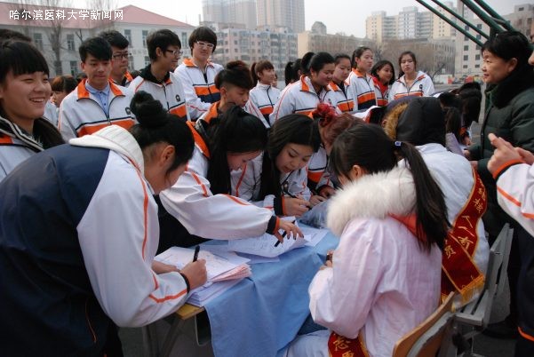 口腔学生年级团总支于3月24日上午,在哈尔滨第一职业高中举行了“你我共同参与,依法防治结核”的宣传活动,口腔年级团总支优秀学生代表参加了此次活动。