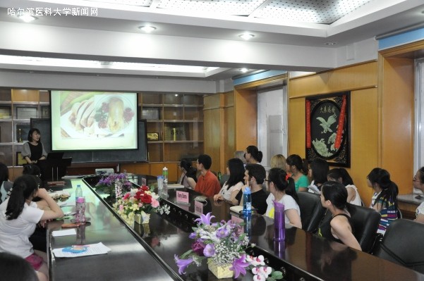 交流会上,加拿大学生William, Christine, Kelsey, Madeline, Ramy, Lauren6名大学生分别为同学们讲述了加拿大的lifestyle(生活方式),Social Culture (社会文化),Weather(天气),Economy(经济)等。学院11级药学的张新梓和汤思源分别为外国朋友们介绍了哈尔滨的名胜古迹以及哈医大药学院学生们的学习生活和创新实验;12级药学的杨瑞和临床药学的寇俊婕、靳冉则为大家带来了美食盛宴,介绍了中国各地美食,欢迎他们到中国旅游,感受博大精深的中华饮食文化;13级药学的侯玉莹和殷琳为大家展示了中国传统乐器的精妙和中国传统节日,大家在领略数千年历史的中国古典音乐,体验丝竹长笛的悠扬婉转的同时感受到中国传统节日的温馨氛围。