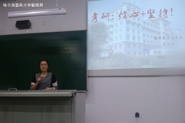 12月11日,公卫学院2012级管理年级举办考研专题辅导讲座。讲座邀请到了哈尔滨医科大学药学院学生年级副主任、药理学硕士马文超为同学们讲解。讲座旨在帮助同学了解考研的细节、指导考研科目复习、解答考研相关问题,为同学们树立信心。