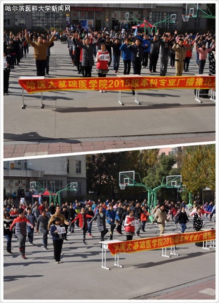 10月20-24日期间,每天中午12:10开始,同学们以班级为单位整齐列队进行广播操比赛。深秋的阳光映照在同学们挺拔的身躯上,越发映衬出了基础医学院2015级本科专业同学们的青春与朝气。虽然时节已至深秋,天气越发寒冷,但同学们却丝毫没有畏惧寒冷的天气,依然动作标准的进行广播操比赛。赛后有序的退场,有些班级为自己优异的表现呐喊欢呼,更体现了同学们的团结协作精神。活动期间,同学们也纷纷表示,这次广播操比赛对于自己提升身体素质、保持良好健康的学习生活状态有着重要意义。