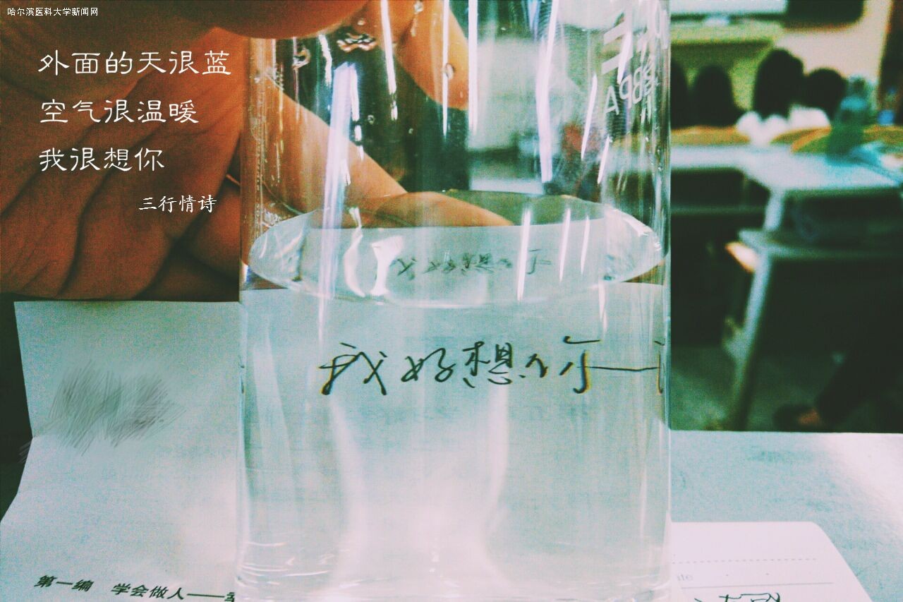 此次活动作品以照片和三行情诗相结合的方式上交,同学们积极参与,各自写出他们的心中之想,亲人、朋友,甚至大地、自然,皆是他们抒情的对象,或是质朴、或是清丽,或是狂放,或是婉约,都发自肺腑 “爱,不需要太多的言语”,三行足矣。