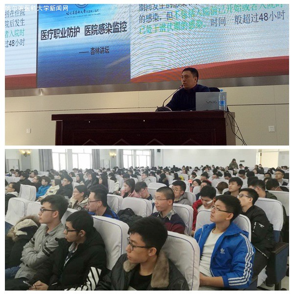 祁老师首先列举出近年来发生的重大医疗卫生感染事件及其影响,通过惨痛的教训警示医院感染的危害性,用我国对医疗卫生投入与产出的关系强调其重要性,并告知我们隔离技术规范的具体内容。其次,祁老师用每年伤亡的图表数据指出抗生素的合理使用和手卫生的必要性,并通过互动的方式加深了我们对手卫生的记忆,向我们提出每个人力所能及的小事也可以汇集到一起改善医院污染。同时祁老师指出,在医院内,医护人员也是感染的受害者,职业暴露的问题在大多数地区都存在。用因常见的针刺和非锐器导致受伤感染的图片,引出我国目前职业暴露的类型和人员分布比例,概括了处理原则,并着重强调了锐器盒的使用。最后,祁老师单独拿出标准预防的重要性及其注意事项向我们语重心长的提出了对同学未来的期望,并以汉昭烈帝刘备的名言卒章显志,使在场听众收获颇多。
