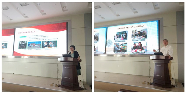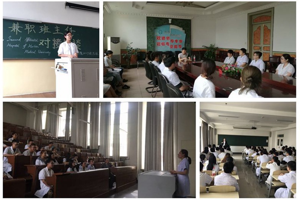 专业教师兼职班主任工作启动仪式,由首批兼职班主任代表麻醉科的张延卓教授,结合自身经历为学生们展现出我院优秀医务工作者,孜孜不倦、严谨治学的精神及对医学事业、教育事业的执着追求。张老师的语言犀利而幽默,通俗易懂,引起了同学们对临床学习的极大兴趣。会议最后,由学生代表2015级日语班郗茜同学发言,号召大家严于律己,在医学路上精益求精。