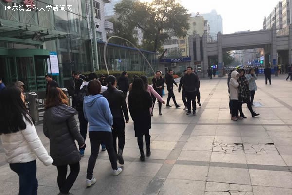 10月13日上午7时,由哈医大一院学生党总支主办,2015级临床本科专业承办的“跃动青春 迎接朝阳”跳大绳比赛在住院处广场举行。