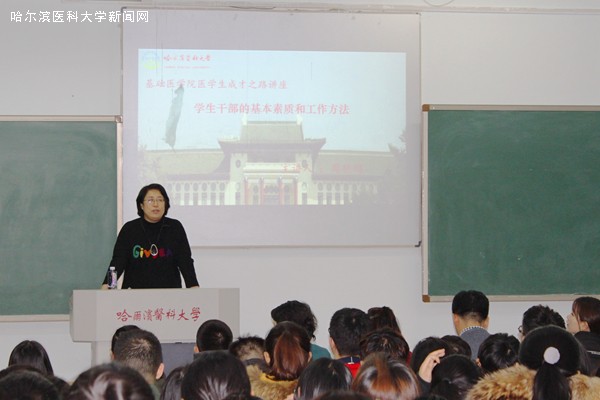 为了提升基础医学院学生干部综合素质,提高学生干部工作能力,基础医学院学生党总支于12月3日在成教一楼一号教室举办了“学生干部的基本素质与工作方法”为主题的医学生成才之路讲座。本次讲座由学工部部长、校团委书记周艳娟老师主讲,基础医学院2018级年级老师以及所有大一学生会、团总支成员和班级干部聆听了此次讲座。