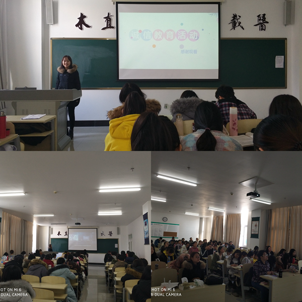 为促使同学们充分认识到诚信的重要性,树立诚信观念,增强法律意识,及时履行国家助学贷款合同,有效地将诚信教育转化为大学生自觉地素养和行为。12月14日上午九时,2015级护理学生年级在哈医大二院规培楼115号教室组织大家开展诚信教育活动。