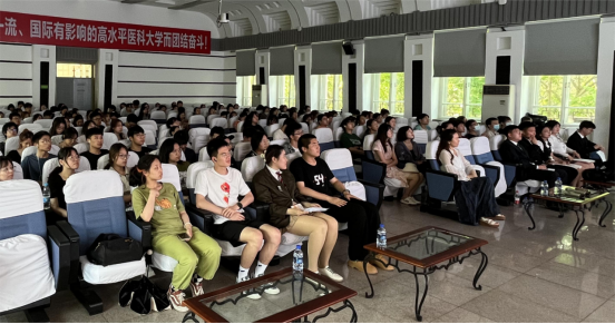 第一临床医学院吴嘉文、口腔医学院陈熹、第二临床医学院俞艺、第三临床医学院吴俊承、第四临床医学院何绪鸿、基础医学院王硕、生物信息科学与技术学院刘哲涵、药学院张璇、公共卫生学院鲍美彤、卫生管理学院黄智鹏、人文社会科学学院王昕分别从学习、工作、考研等方面介绍自己大学本科阶段的经历,他们鼓励学弟学妹们在学业上勤奋刻苦,珍惜大学学习时光,积极参加学校组织的各项活动,锤炼品格、提升素养、增长才干、练就本领,争做德智体美劳全面发展的社会主义建设者和接班人。