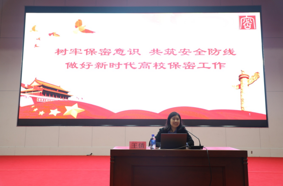 此次活动邀请了省国家保密局宣传法规处副处长王倩作题为《提高保密意识共筑安全防线做好新时代高校保密工作》的讲座。王倩从保密基本概念、保守国家秘密的法律制度、高校学生生活中应注意的保密事项等三个方面进行了讲授,使同学们受到了一次深刻的保密教育。