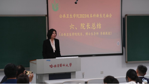 院长李颖做总结讲话,她对2023级新生的到来表示热烈欢迎和祝贺,她指出,大学阶段需培养全方位的能力,鼓励同学们要奋发向上,以积极的态度迎接大学各种挑战;要不断提升自己的专业本领,树立正确的人生观、价值观,确立远大人生目标,勤勉励学,成为德才兼备、具有创新精神的高素质公共卫生人才。