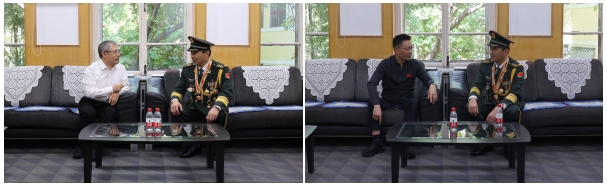 学校党委书记张学和校长季勇分别与胡国桥大校亲切见面,代表学校对英雄军人表达敬意、欢迎和感谢。