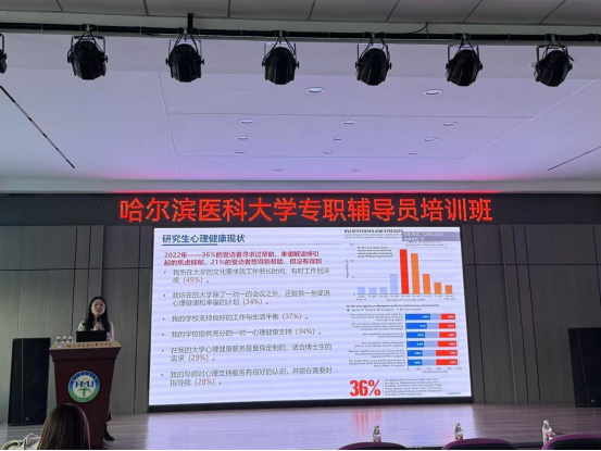 研究生心理健康教育与咨询中心副主任周佳玮以《助人育心—建立帮助关系的基本技术》为题围绕辅导员在心理支持工作中的沟通技巧、干预方法等方面展开讲解,特别强调在帮助学生建立积极健康的心理关系方面所需的技巧。她的分享为辅导员们提供了实用的心理辅导方法,有助于他们更好地帮助学生应对成长中的心理挑战。