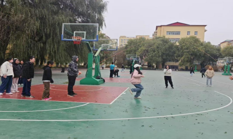 学生在运动场跳大绳