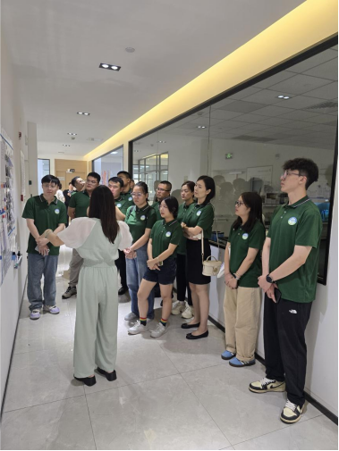 团队首站抵达杭州,访问医疗健康数字化服务领先企业——丁香园。企业负责人系统介绍了公司发展历程、核心业务与产品体系,并引导师生参观公司各部门,实地了解互联网医疗、健康数据服务及科普平台的实际运作。在交流研讨环节,师生就健康大数据应用、科学传播、医学信息学发展等议题与企业专家进行了深入讨论,为后续合作奠定了良好基础;赴杭州景杰生物科技有限公司进行调研学习。在参观实验室与生产车间过程中,师生深入了解蛋白质组学技术从科研到转化应用的完整链条。活动特别设置“景杰生物—哈医大校友见面会”,校友们分享了自己的职业发展经验,进一步增强了校企间的情感纽带与合作共识。