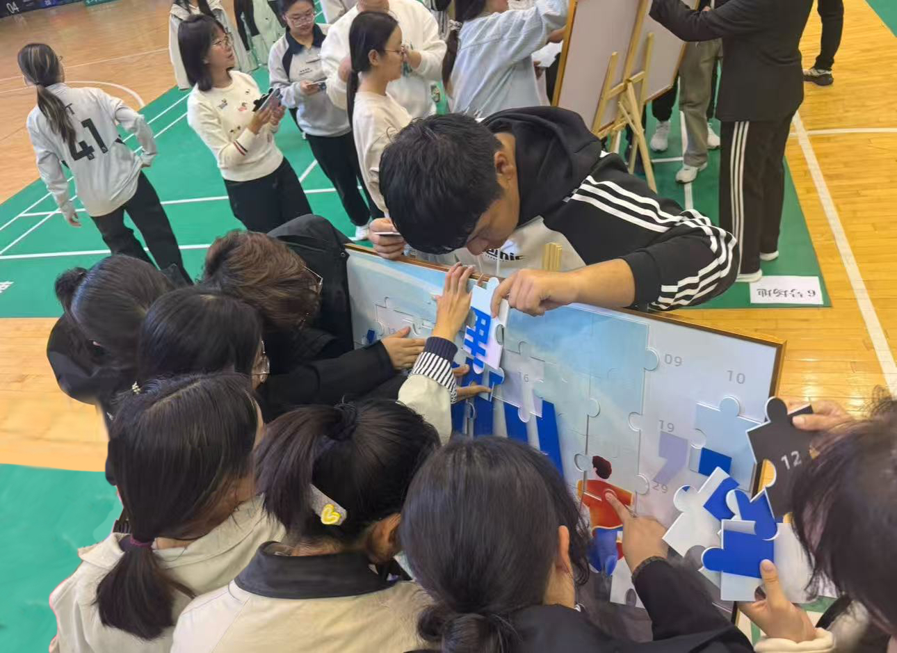 本次活动伊始,“击鼓传花”破冰环节有效缓解了学生的社交压力,激发了主动参与热情。随后拼图活动中,各组成员通过密切沟通与协作,共同完成了展现“百年正青春‘心’光向未来首届‘先行者’心理健康校园行”字样的拼图作品。这一过程不仅让学生体验到团队合作的成就感,更通过拼图互动,帮助他们在实践中认识自我价值、建立集体归属感,提升人际协作能力。在场学生深受触动,纷纷表示将以积极心态投入后续系列活动,主动践行心理健康理念,展现哈医学子阳光向上的精神风貌。
