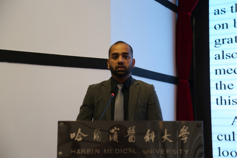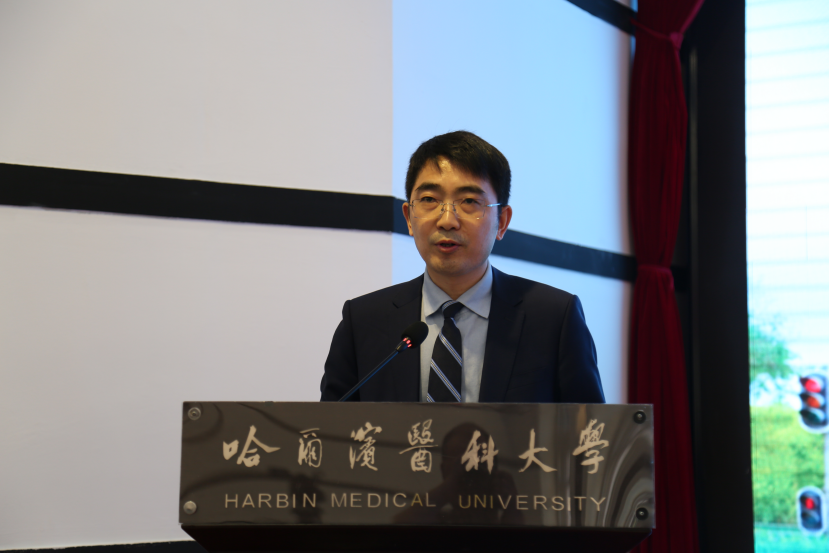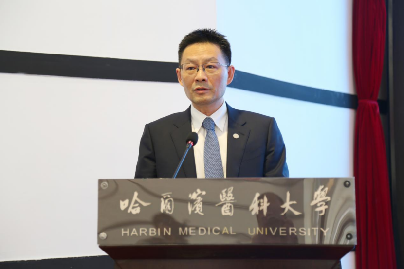 哈尔滨医科大学第一临床医学院尹德春教授作为教师代表寄语留学生们能迅速适应新的学习和生活环境,并深入体验中国文化的丰富多彩,鼓励留学生们在学习过程中设定清晰的学习目标,培养独立自主的学习能力,为成为一名伟大而高尚的医生打下坚实的基础。